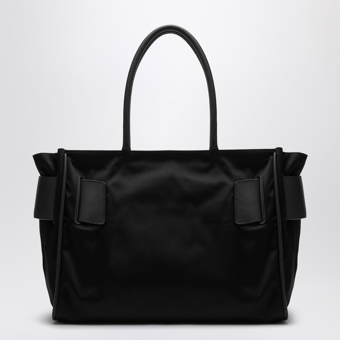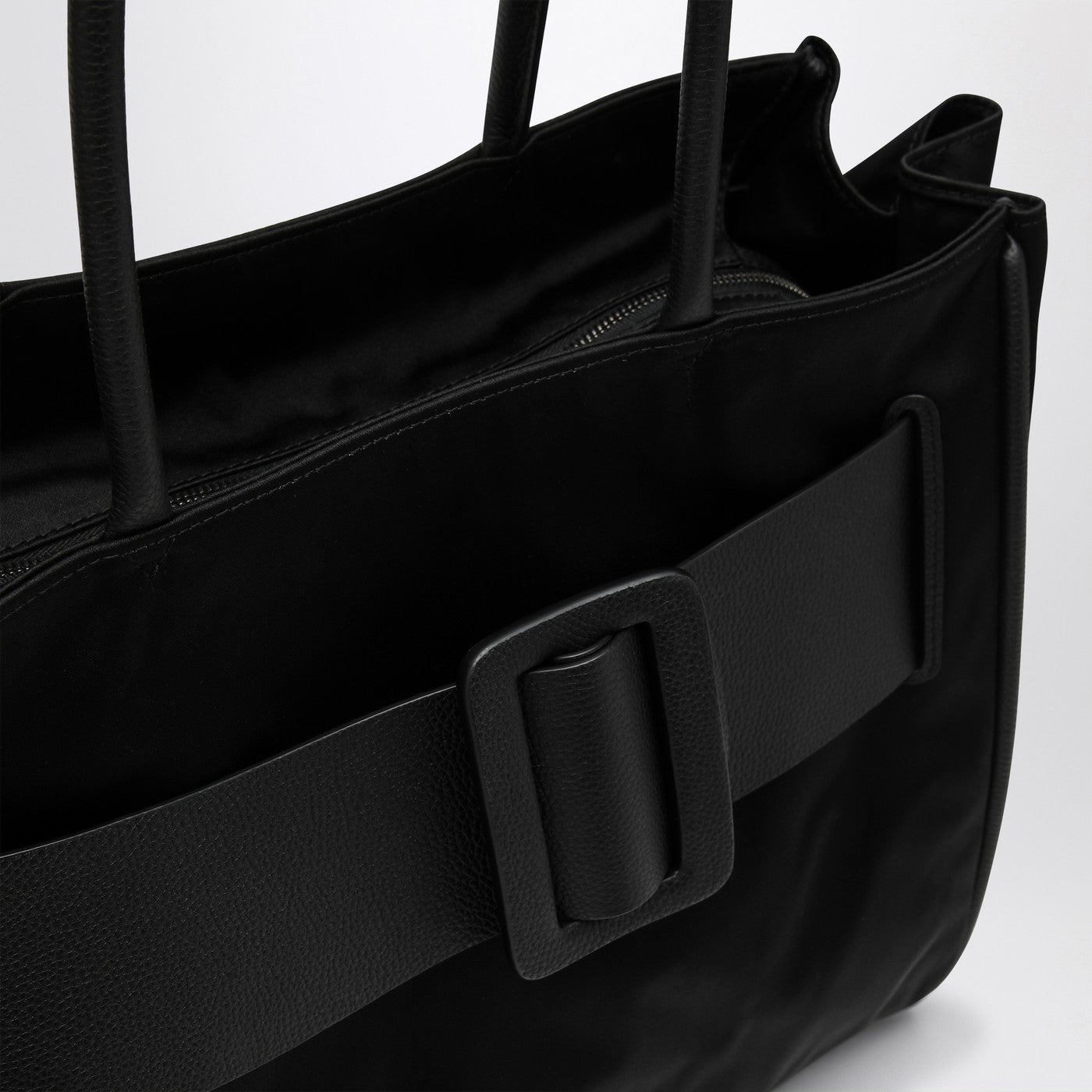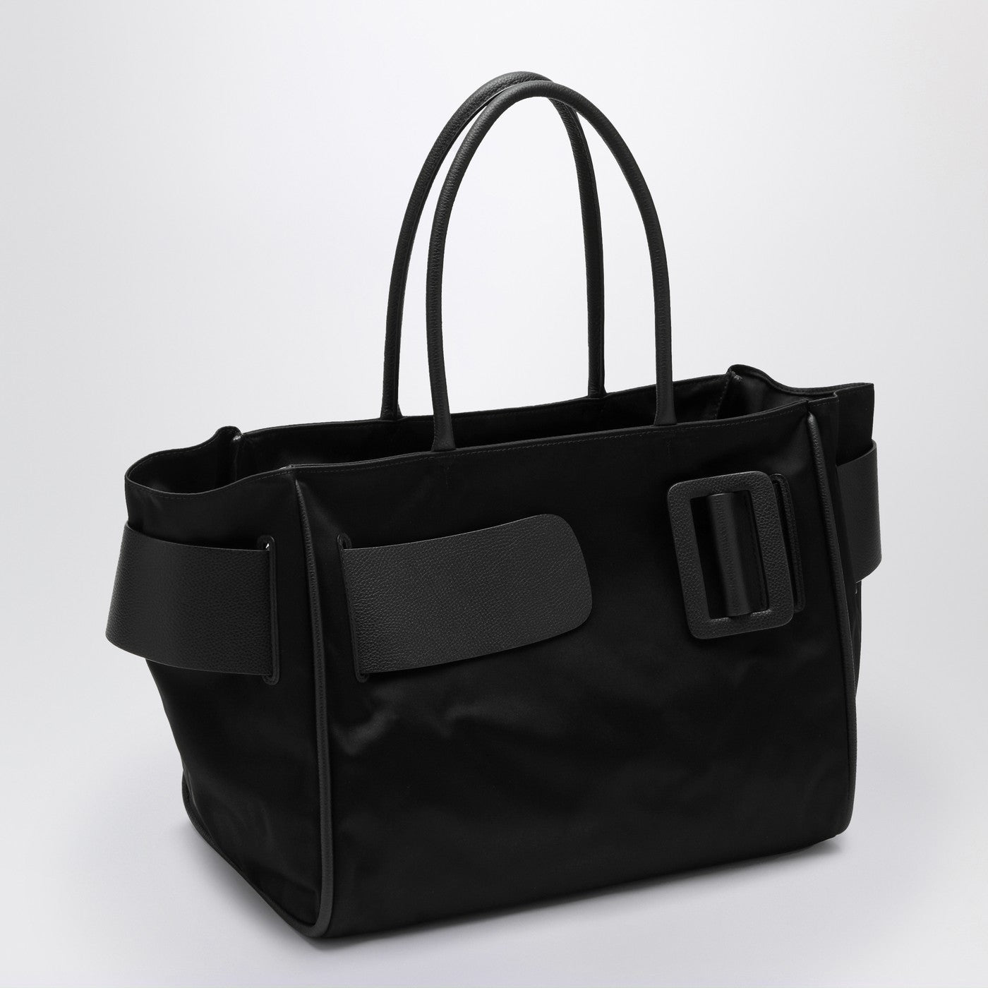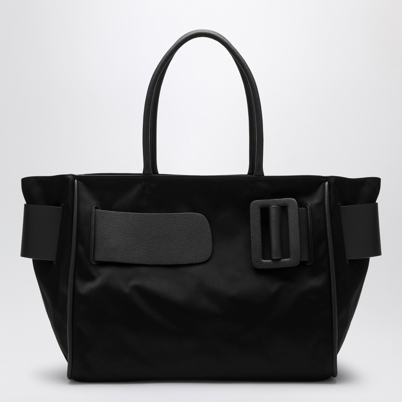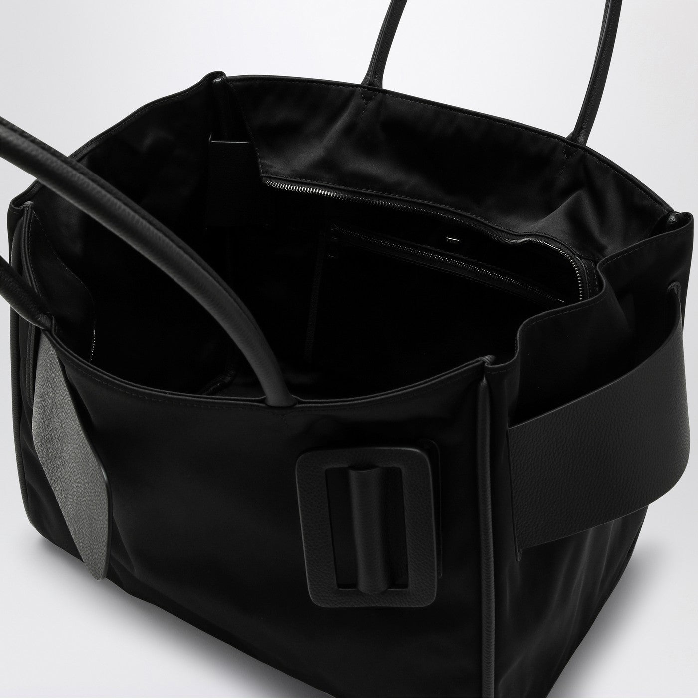 Boyy的Black Econyl中的大型包,在前面有一个超长扣,两个顶部的手柄,一个扁平的拉链口袋,顶部拉链固定和皮革细节。