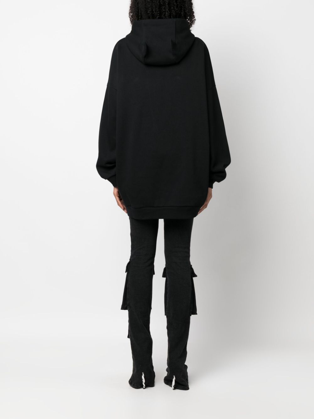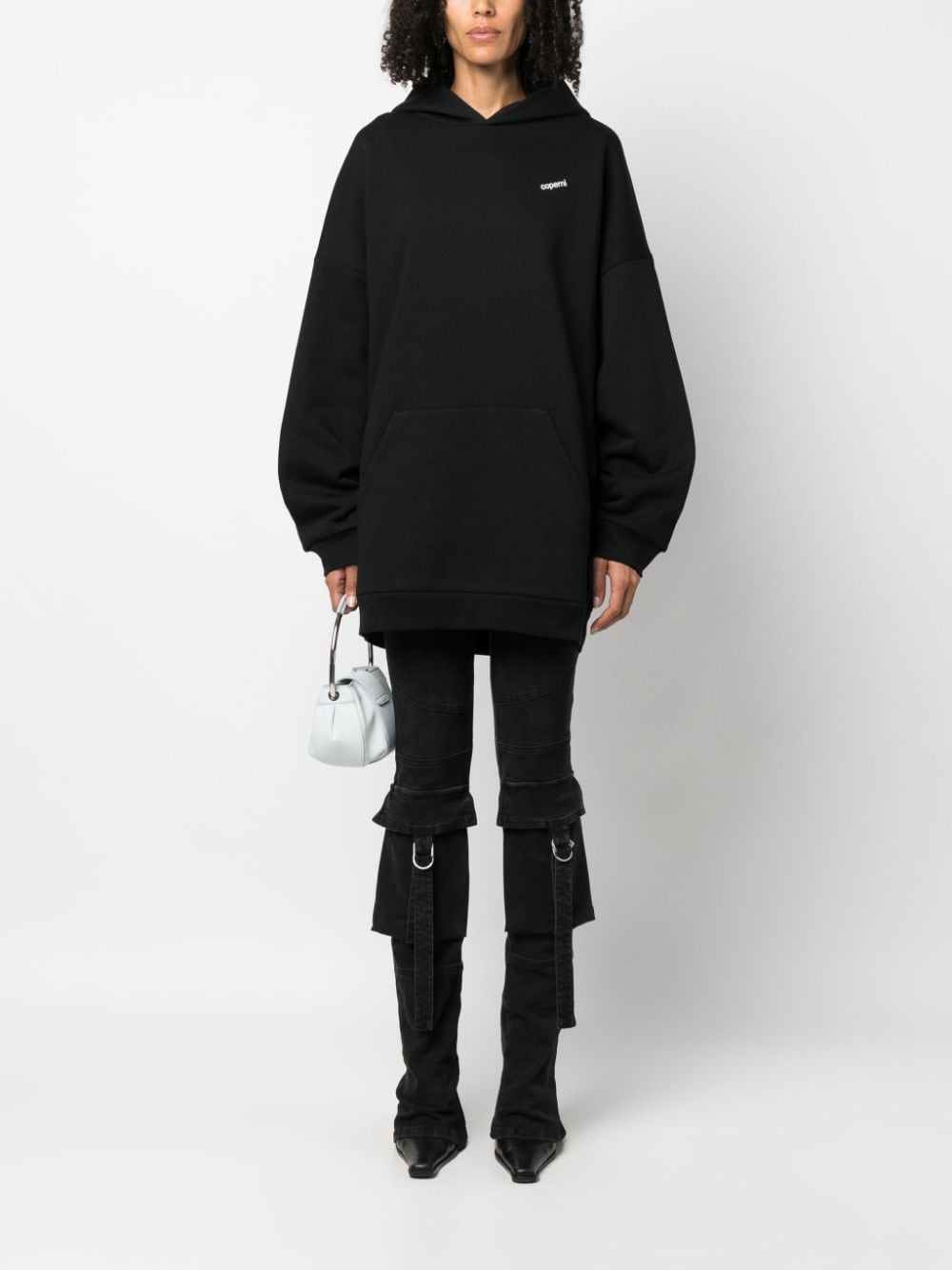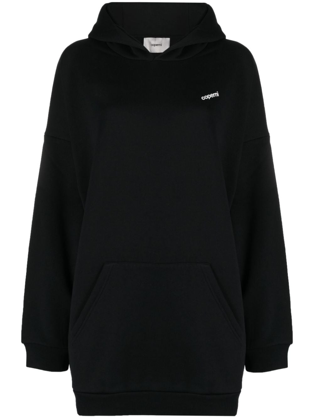 黑色棉花混合徽标印花在胸前袋前袋袋经典罩长袖长下摆