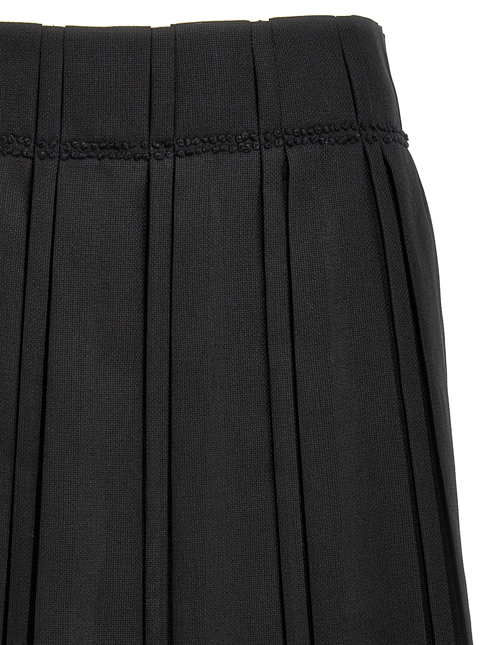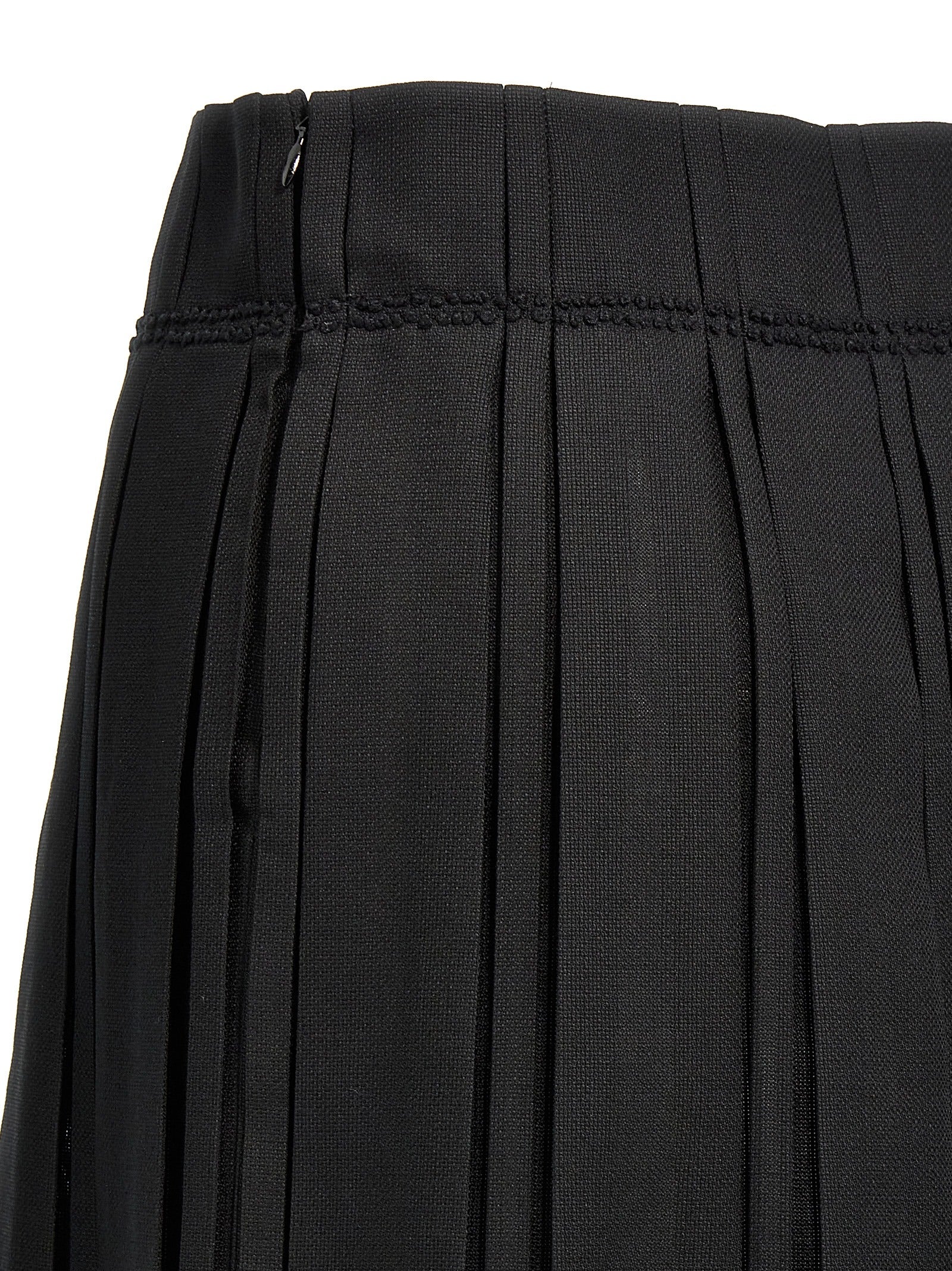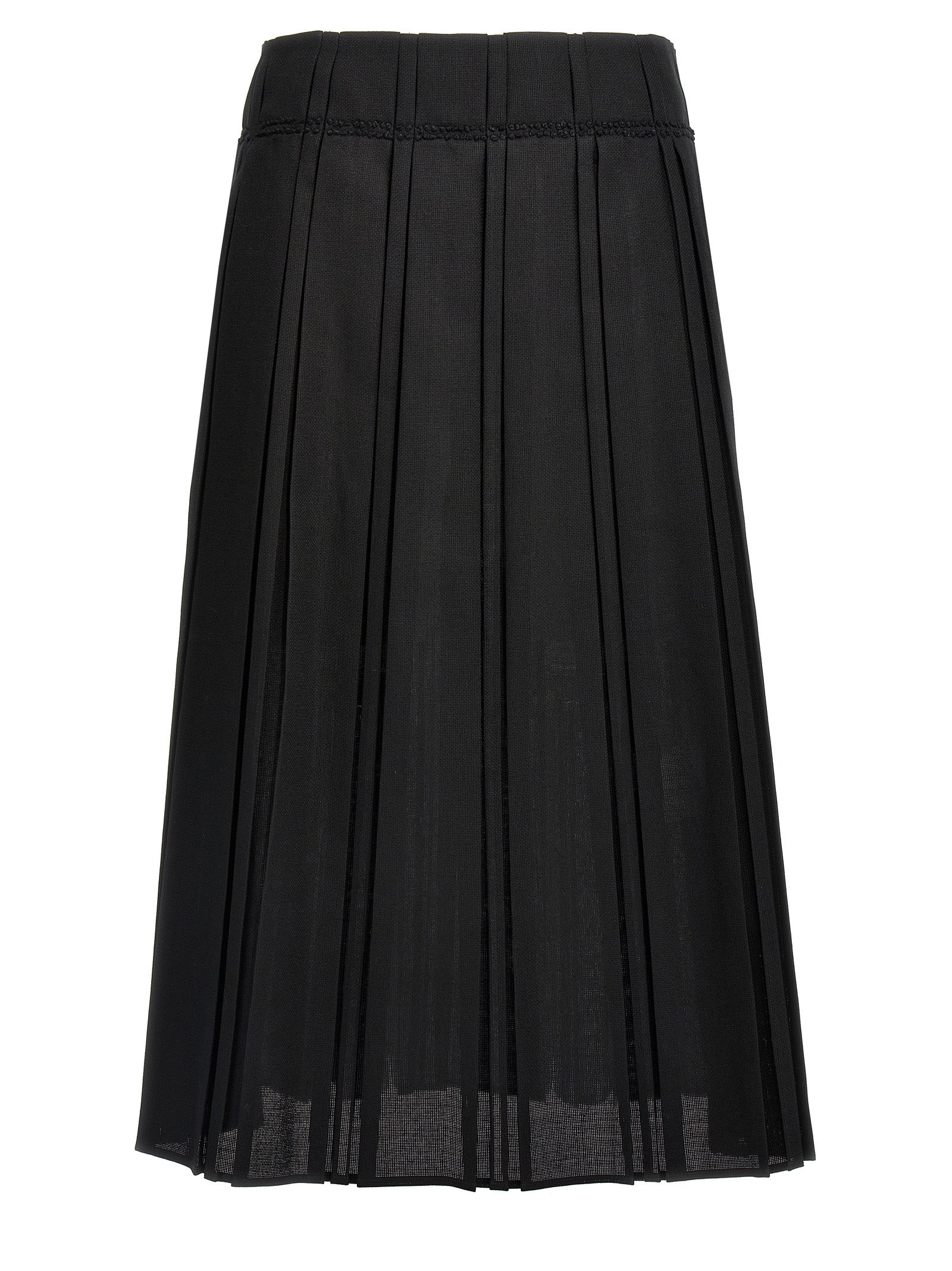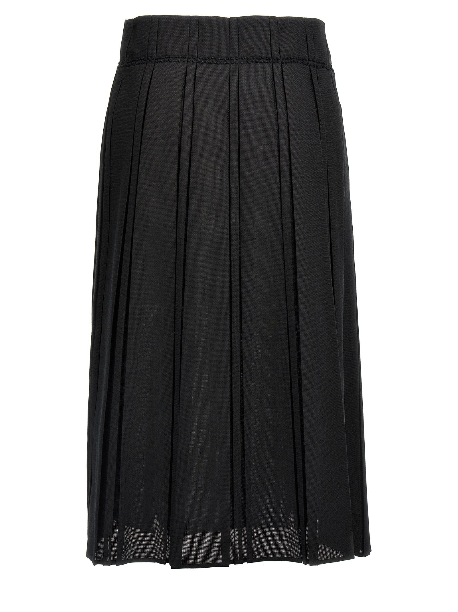 羊毛帆布,百褶图案,侧拉链闭合的Midi裙子。
