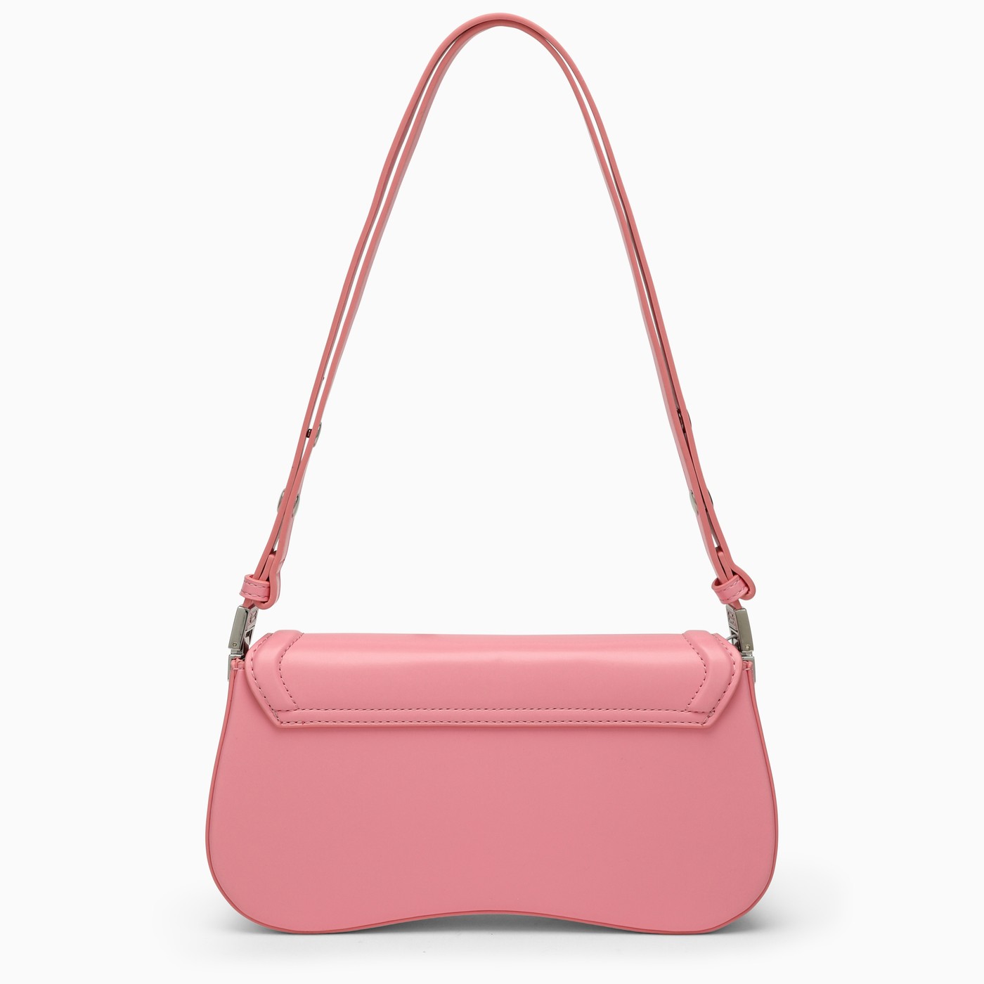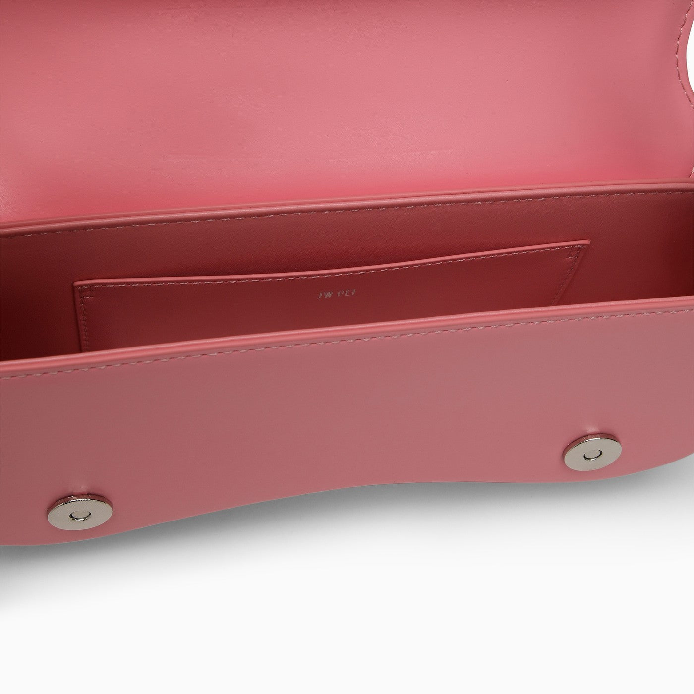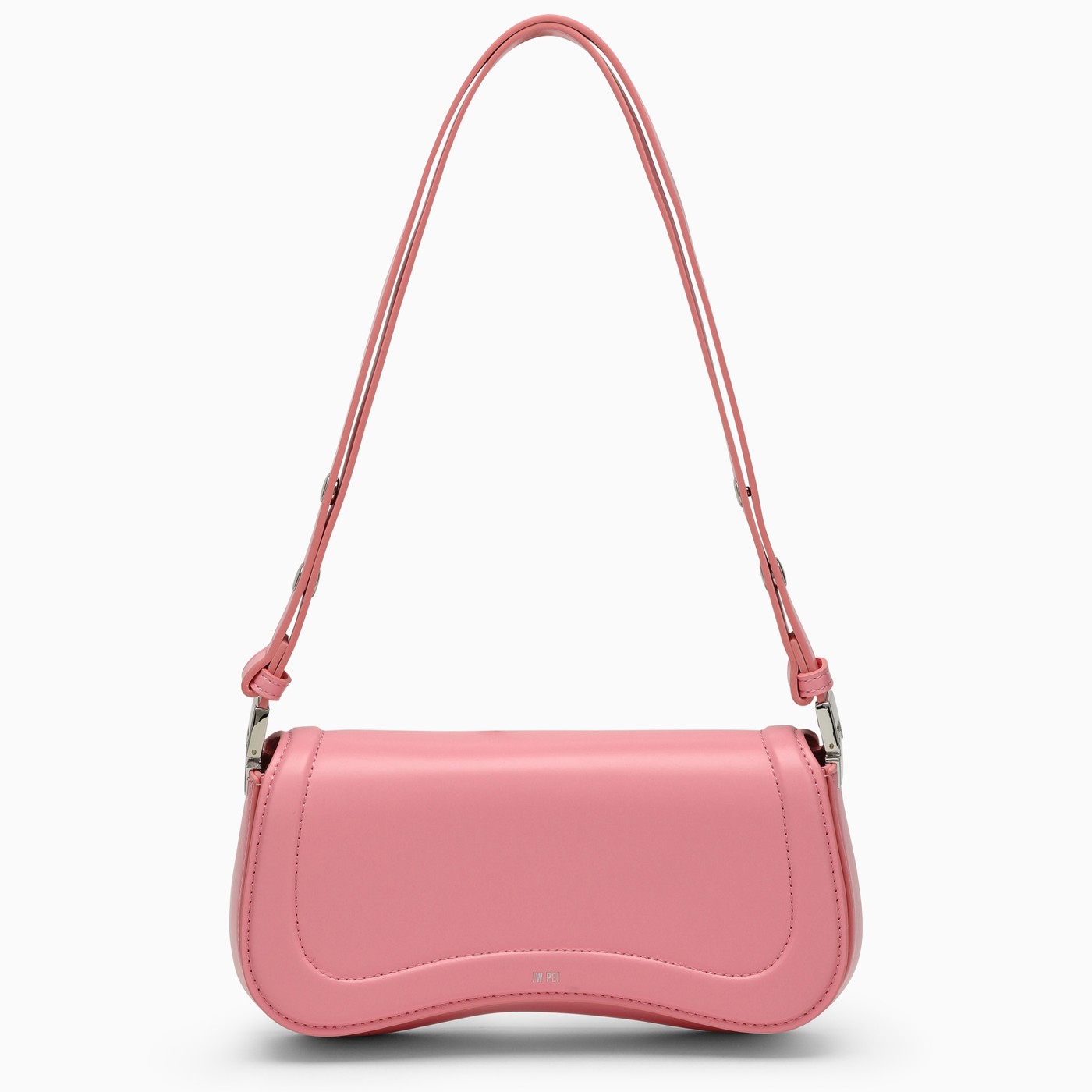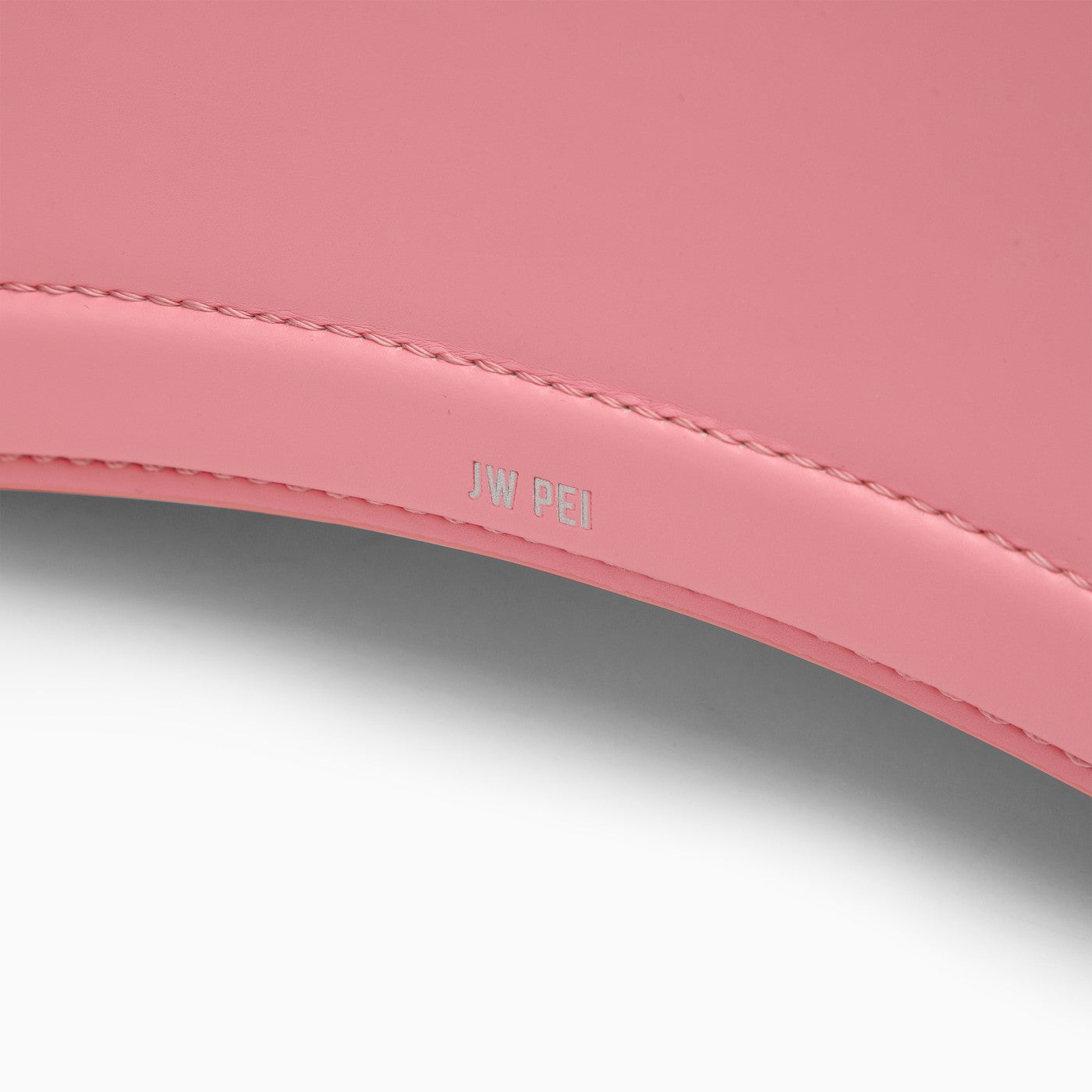 JW PEI的粉红色合成皮革肩带,带有带有双重磁性按钮的翻盖,可调节的肩带,内部平坦口袋,前徽标字母和银色金属硬件。