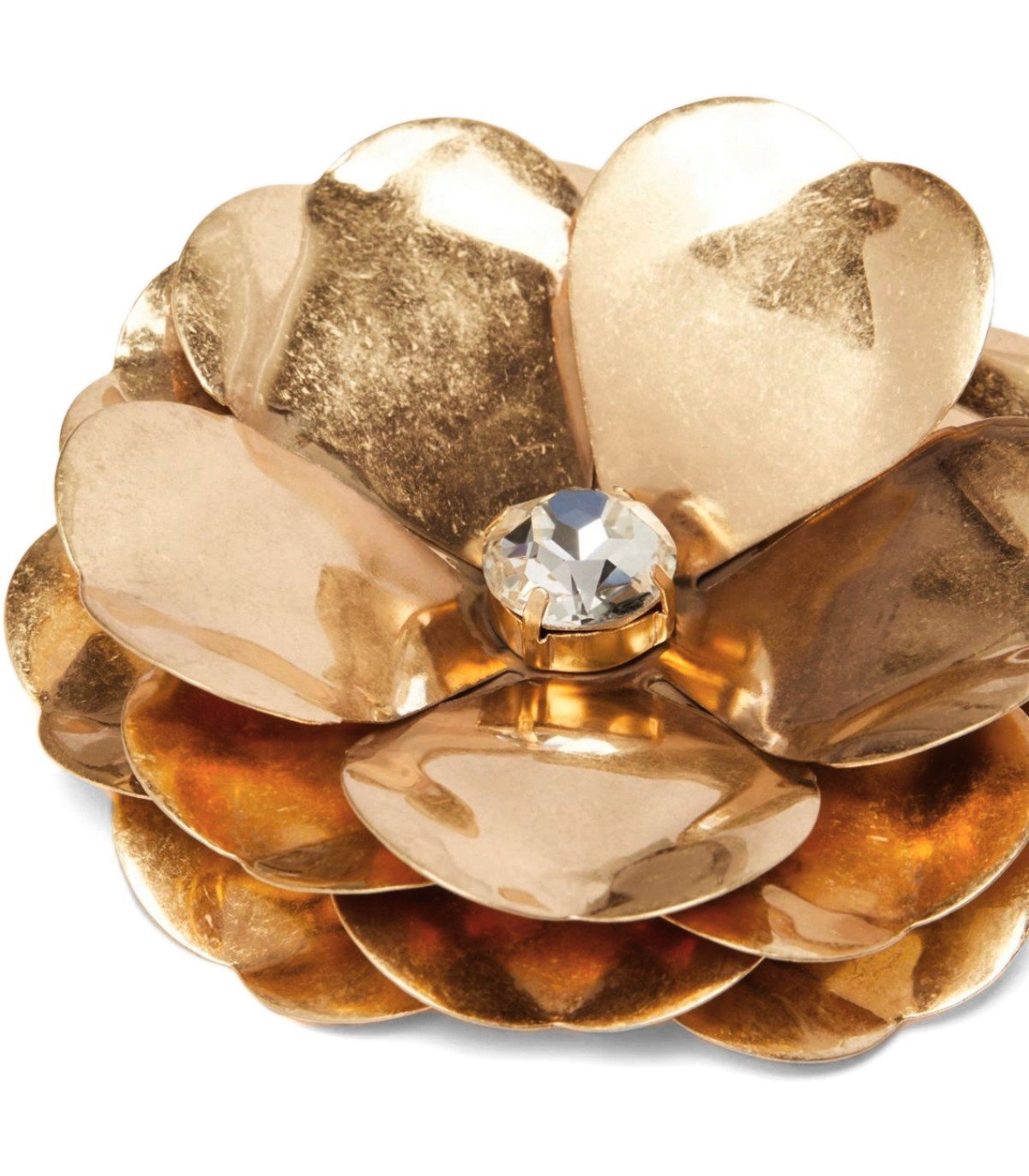 马克斯·马拉周末的Civada Brooch用花形的铜音金属。用中央玻璃水钻装饰,以增加光泽。旨在提升低调的服装。 组成:金属和玻璃。