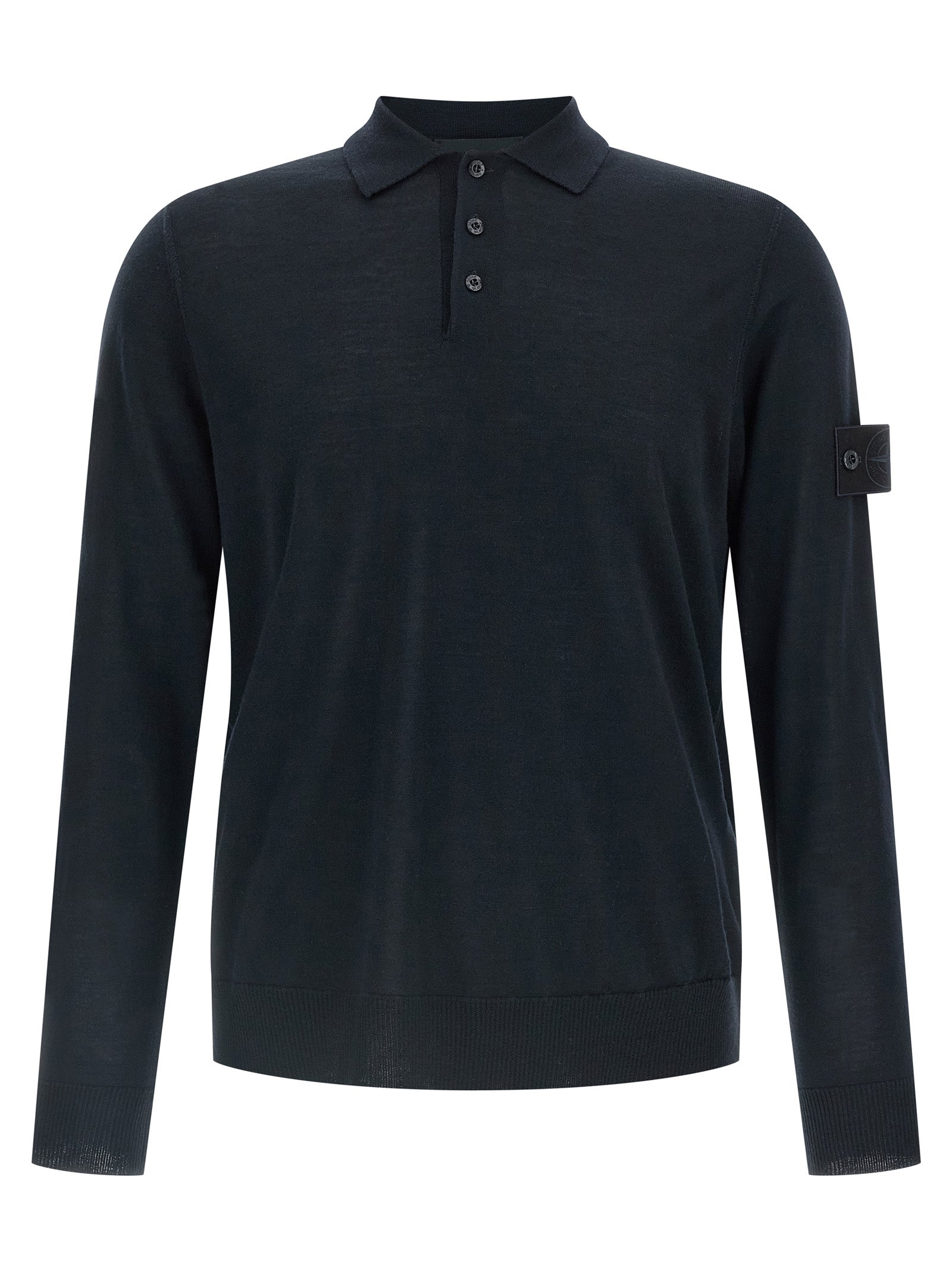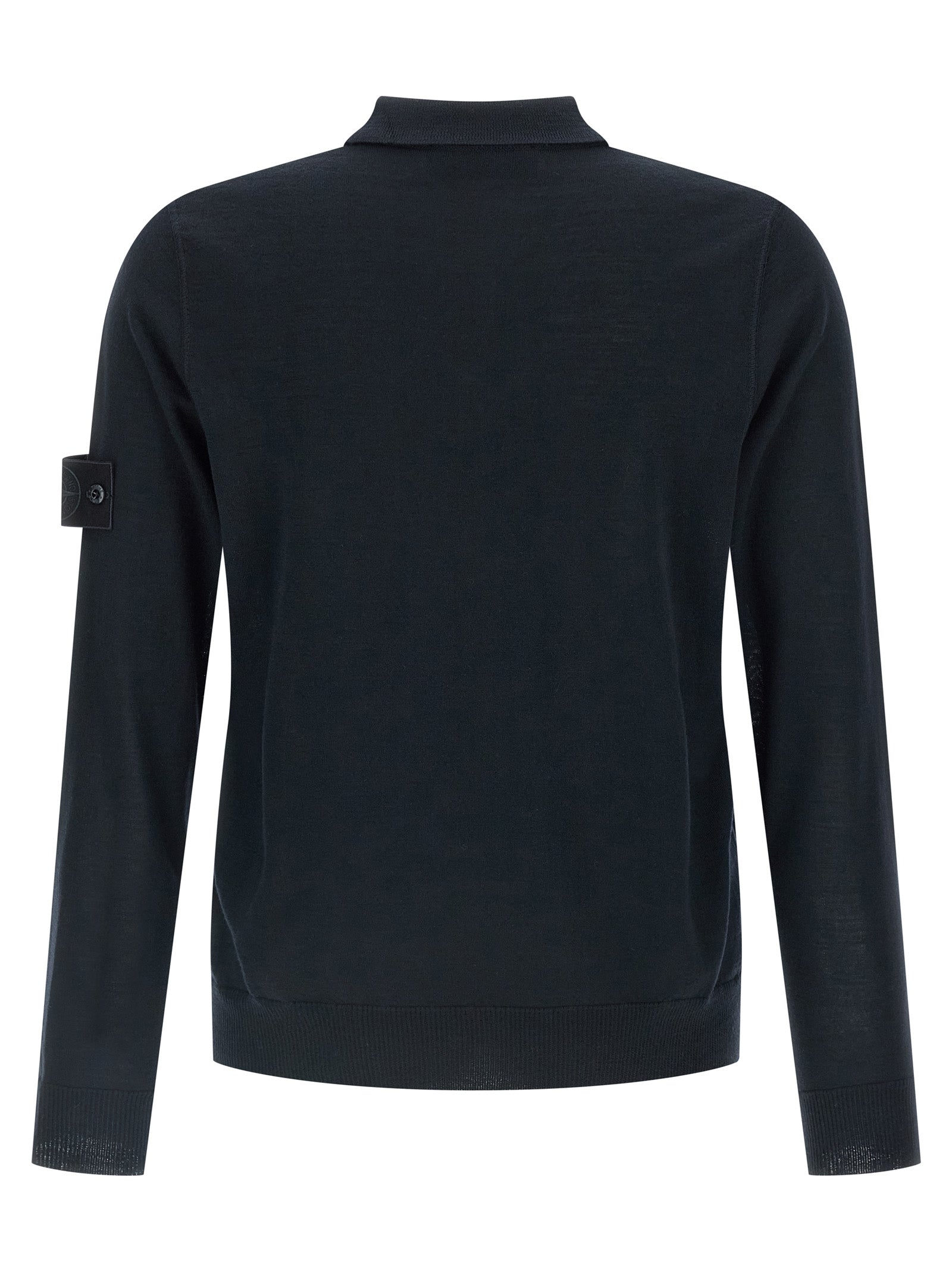 Polo shirt in fine virgin wool, collar and buttons, long sleeves with cuffs and tone-on-tone logo badge appliqué.