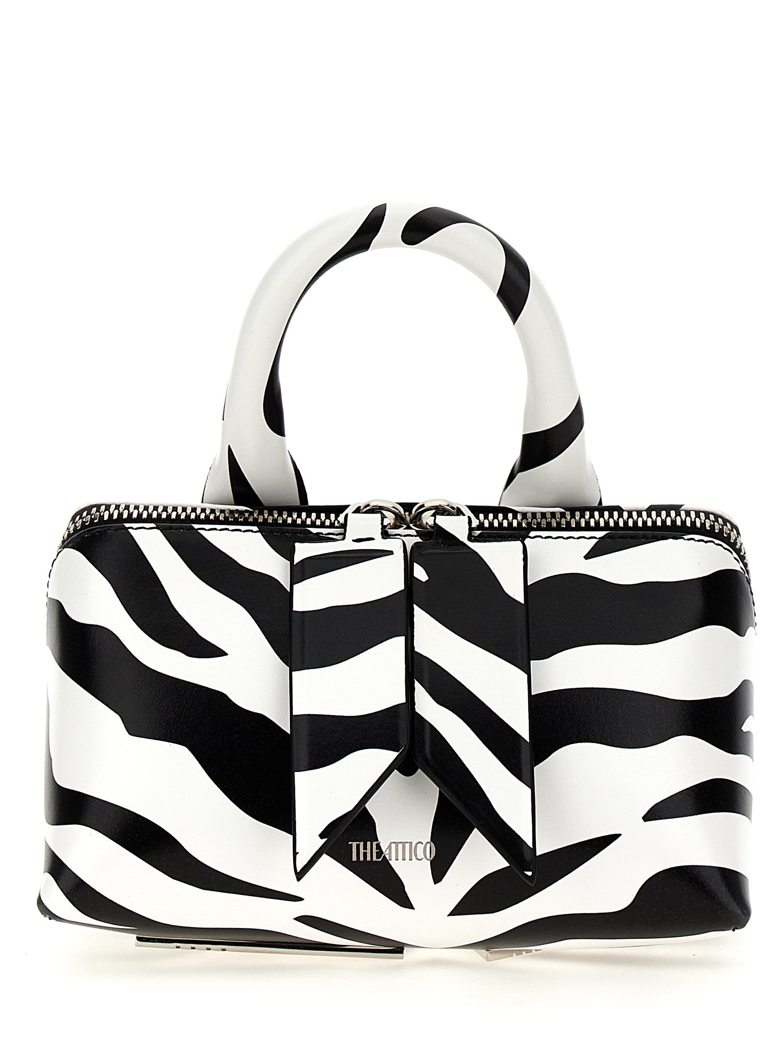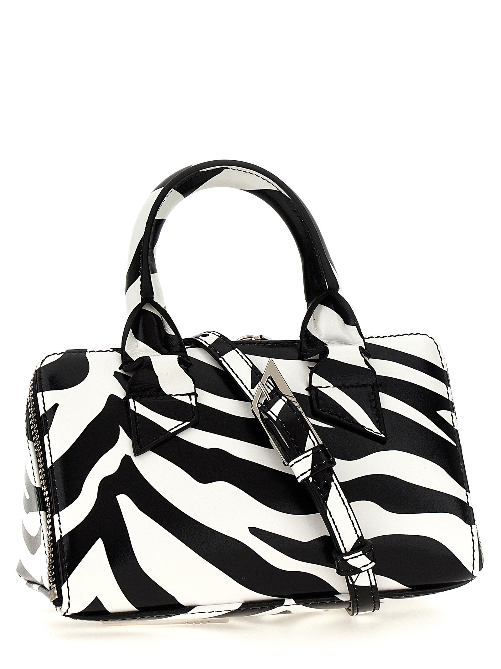 “星期五”迷你斑马打印皮革手提包,带有顶部手柄,拉链闭合,可移动的肩带,也可以用作皮带和前徽标印花。