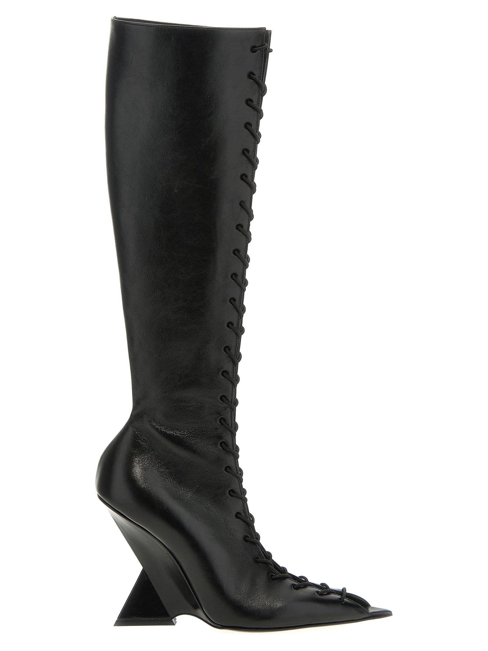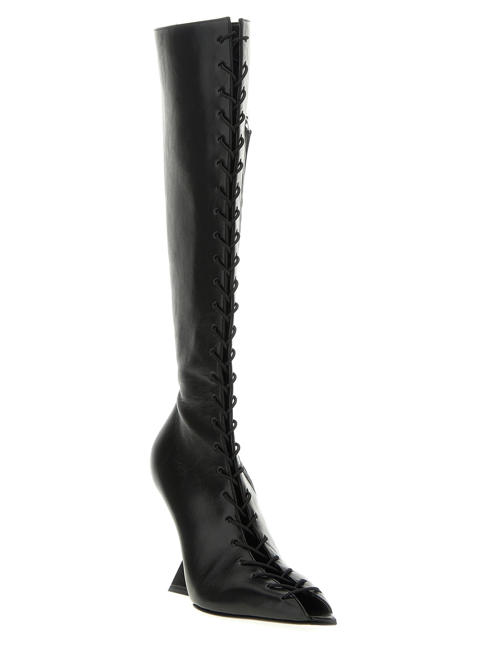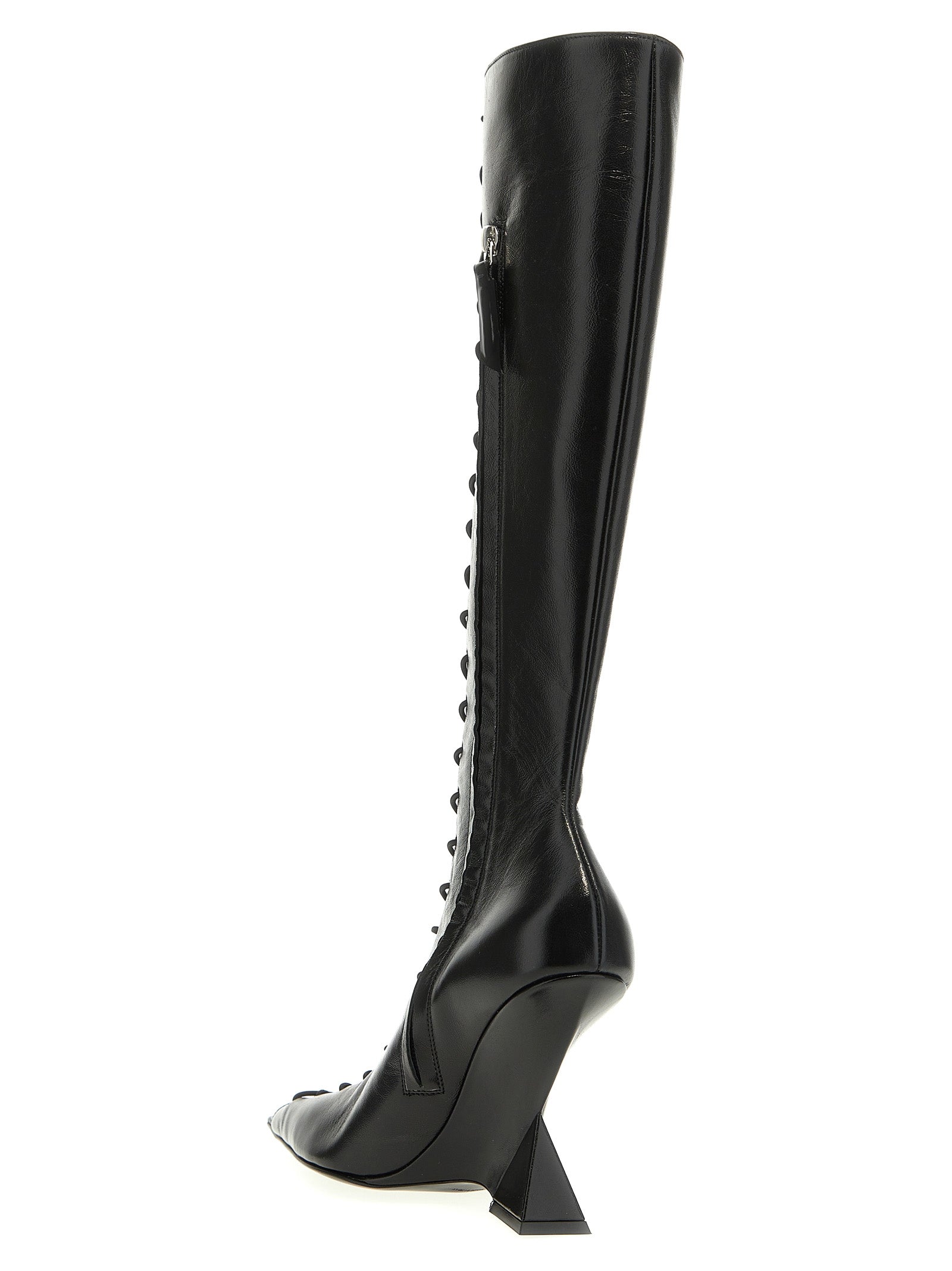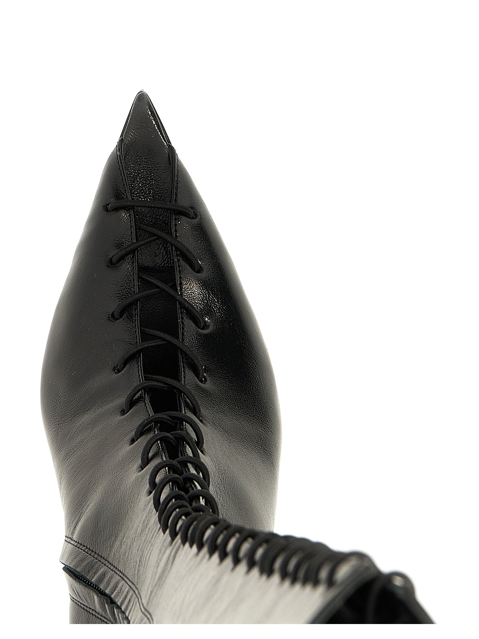“摩根”皮靴,带有前蕾丝,轮廓鞋跟。