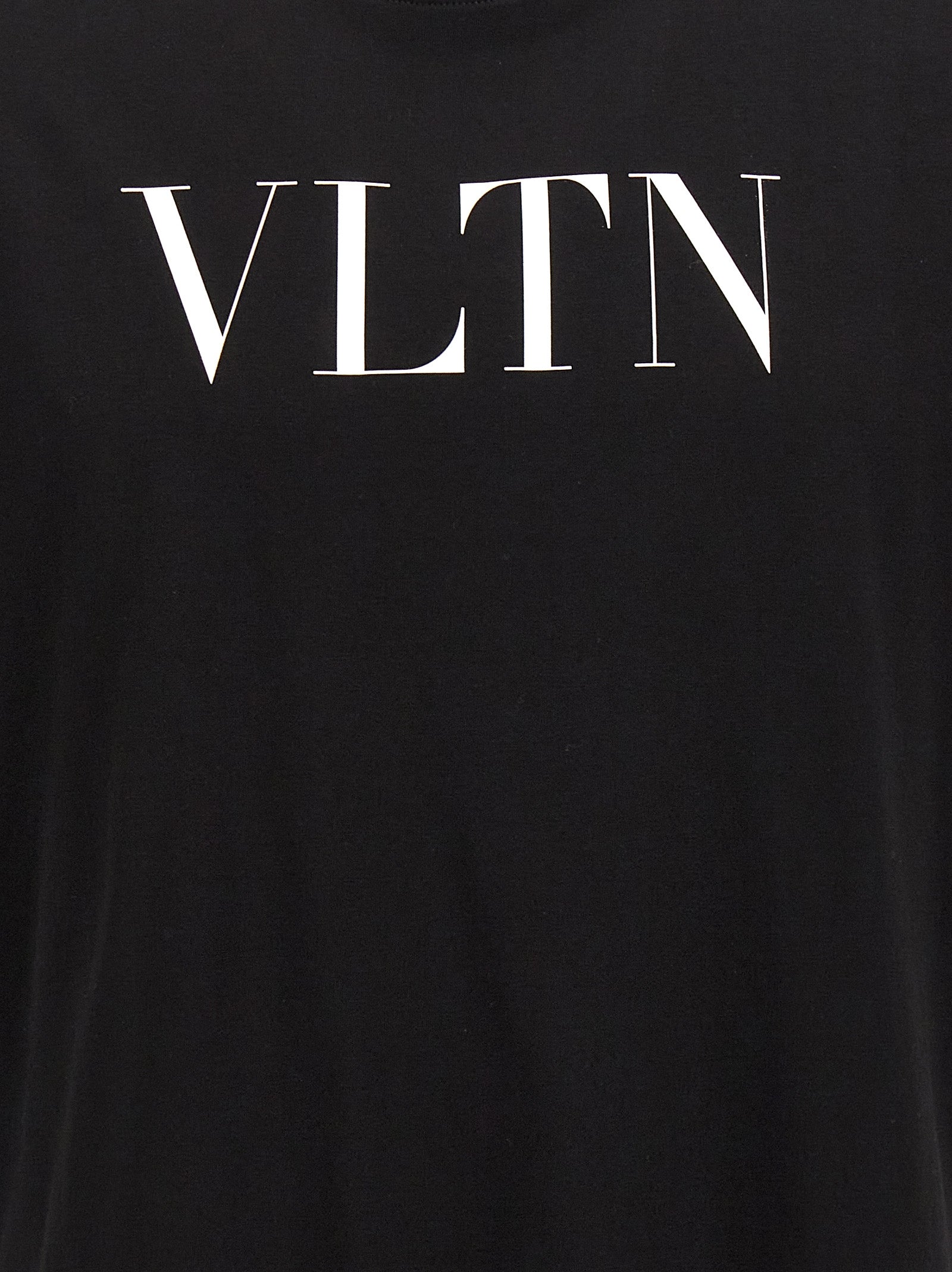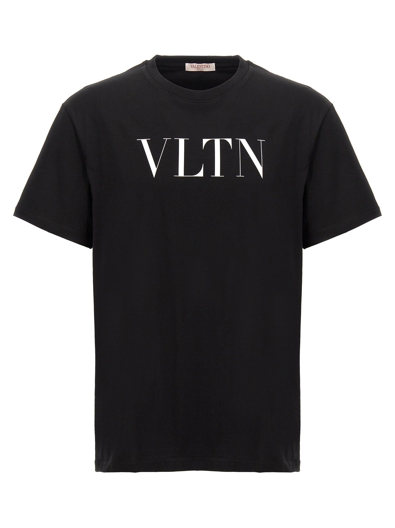 棉机脖子T恤,带有前“ VLTN”徽标印花和短袖。
